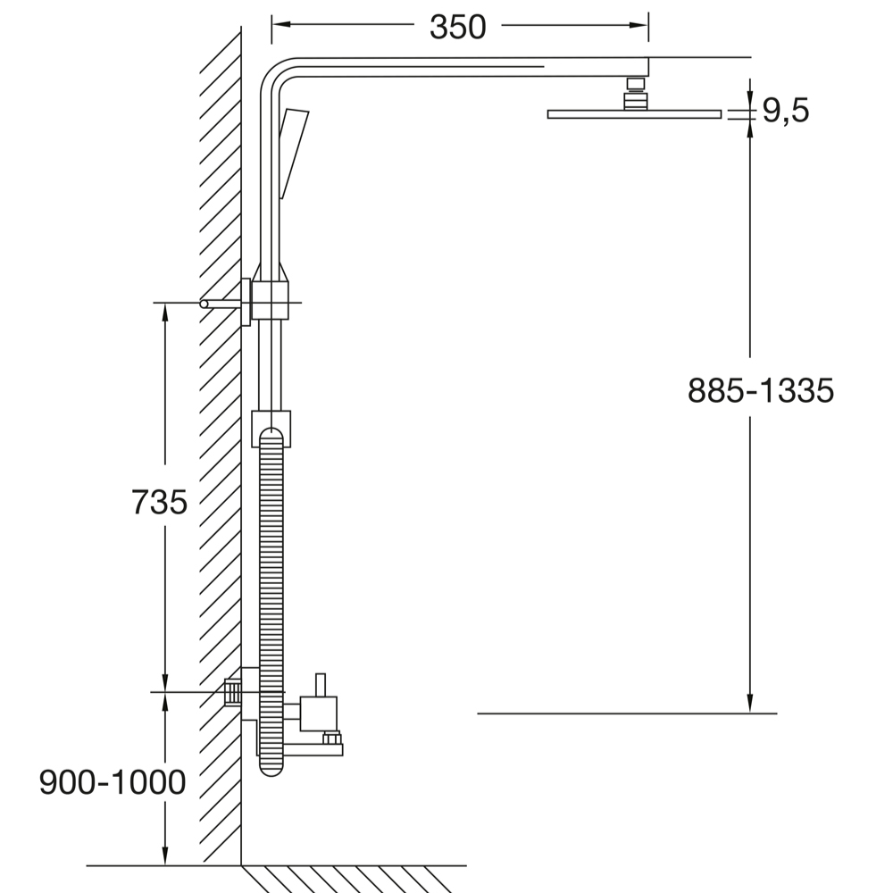 mit höhenverstellbarem Regenbrausearm (bei Installation)
