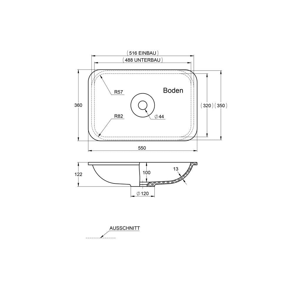 Treos Serie 750 - Mineralguss Einbaubecken - Unterbaubecken - weiss glänzend