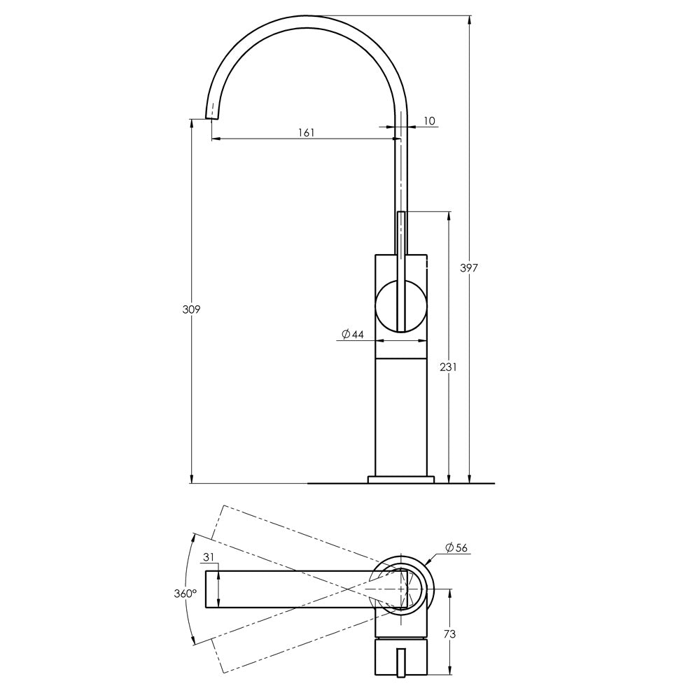 mit erhöhtem Armaturenkörper - geeignet für Aufsatzwaschbecken